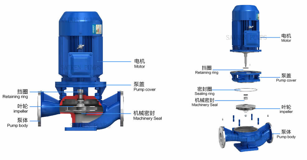 1. ISG pipeline pump is used to transport clean water and other liquids with physical and chemical properties similar to clean water. It is suitable for industrial and urban water supply and drainage, high-rise building pressurized water supply, garden sprinkler irrigation, fire pressurization, long-distance transportation, HVAC refrigeration cycle, bathroom and other cold and warm water cycle pressurization and equipment matching, use temperature T <80 ℃. 2. IRG type vertical hot water pump is suitable for metallurgy, chemical industry, textile, wood processing, papermaking, and high-temperature hot water pressurization circulating transportation of boilers in restaurants, bathrooms, hotels, and urban housing heating circulation pumps. The use temperature is below 120℃. 3. GRG type vertical high temperature centrifugal pump is widely used in: energy, metallurgy, chemical industry, textile, papermaking, and high-temperature hot water pressurization circulating transportation of boilers in restaurants, bathrooms, hotels, and urban housing heating circulation pumps, the use temperature is below 240 ℃ . 4. IHG vertical stainless steel pipeline centrifugal pump, used for conveying liquids that do not contain solid particles, are corrosive, and have a viscosity similar to water. It is suitable for petroleum, chemical, metallurgical, electric power, paper, food, pharmaceutical and synthetic fiber sectors. The temperature is -20℃ ~ 120℃. 5. YG type pipeline oil pump is used to transport petroleum products such as gasoline, kerosene, diesel, etc. The temperature of the conveyed medium is -20℃ ~ + 120℃. 6. IHGB type vertical stainless steel explosion-proof chemical centrifugal pump, suitable for conveying flammable chemical liquids. 7. ISGD, IRGD, GRGD, IHGH, YGD, IHGBD vertical low-speed centrifugal pumps, suitable for occasions with low environmental noise requirements and air conditioning cycles.